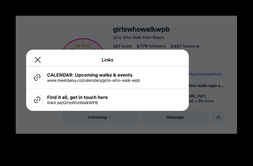Your Daisy link lives in your Instagram bio alongside your other links, so followers know exactly where to tap to see what’s next.