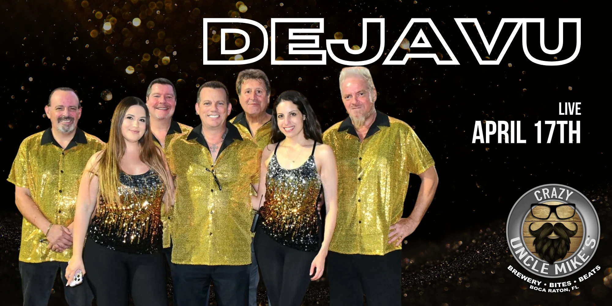 DejaVu is South Florida’s new high-energy party band, bringing together 8 seasoned professional musicians with over 30 years of live performance experience. Made up of elite players from some of the area’s top bands, DejaVu delivers an unforgettable live show packed with the greatest hits from the 70s, 80s, 90s, 2000s, and today. From timeless classics to crowd-favorite anthems, their sound is built to keep audiences singing, dancing, and wanting more. Buy your tickets and reserve your table or couch area for the night! Make sure to check out our food and drink menus! GET YOUR TICKETS NOW! April 17th: Dejavu Can’t make it, don’t worry all of Crazy Uncle Mike’s shows are streamed straight to your living room on our Youtube & Facebook! https://www.eventbrite.com/e/dejavu-tickets-1986915821709?aff=oddtdtcreator