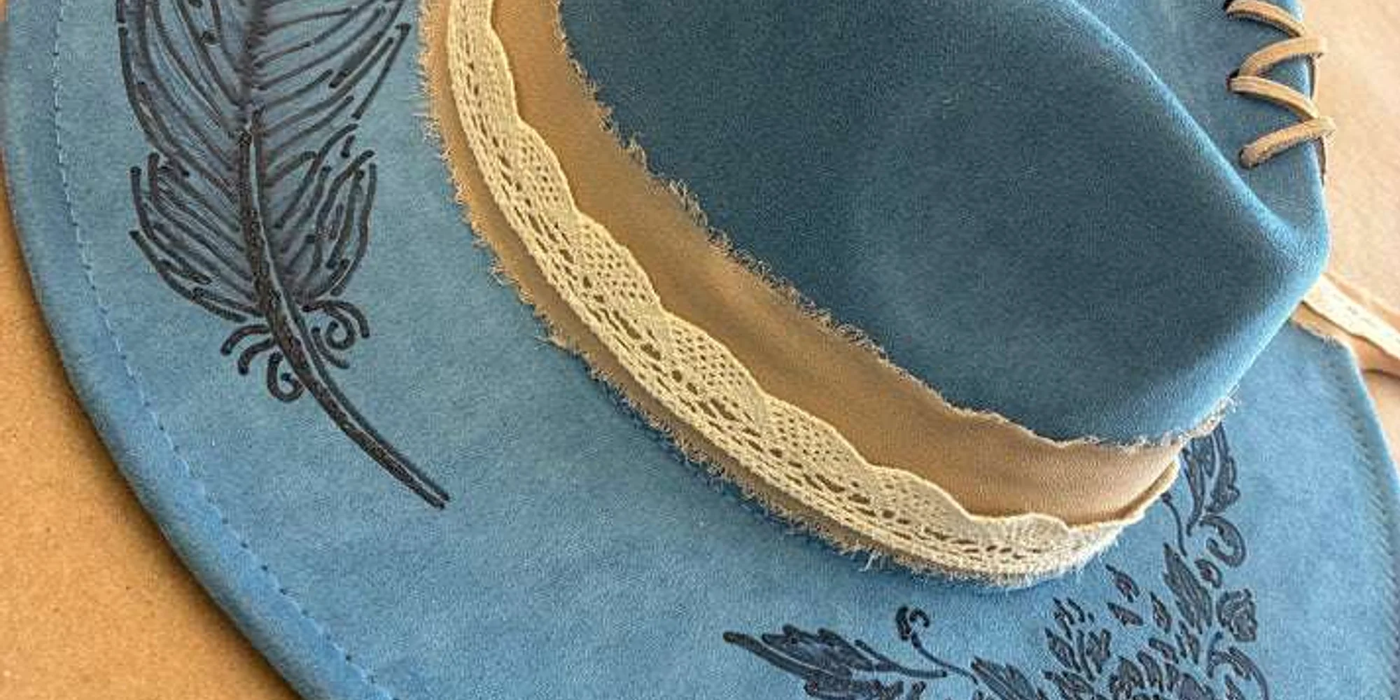 All materials needed to burn a Flat Brimmed Hat similar to these will be supplied; hats are available in a variety of colors and styles. There will be lots of design patterns to choose from, and instruction and use of tools are all included. The class is approximately 2 hours long and is limited to 16 participants. Please note that burning tools may only be used by adults. Tickets are non-refundable, but can be transferred to a friend. The class will not be extended beyond the end time for late arrivals.