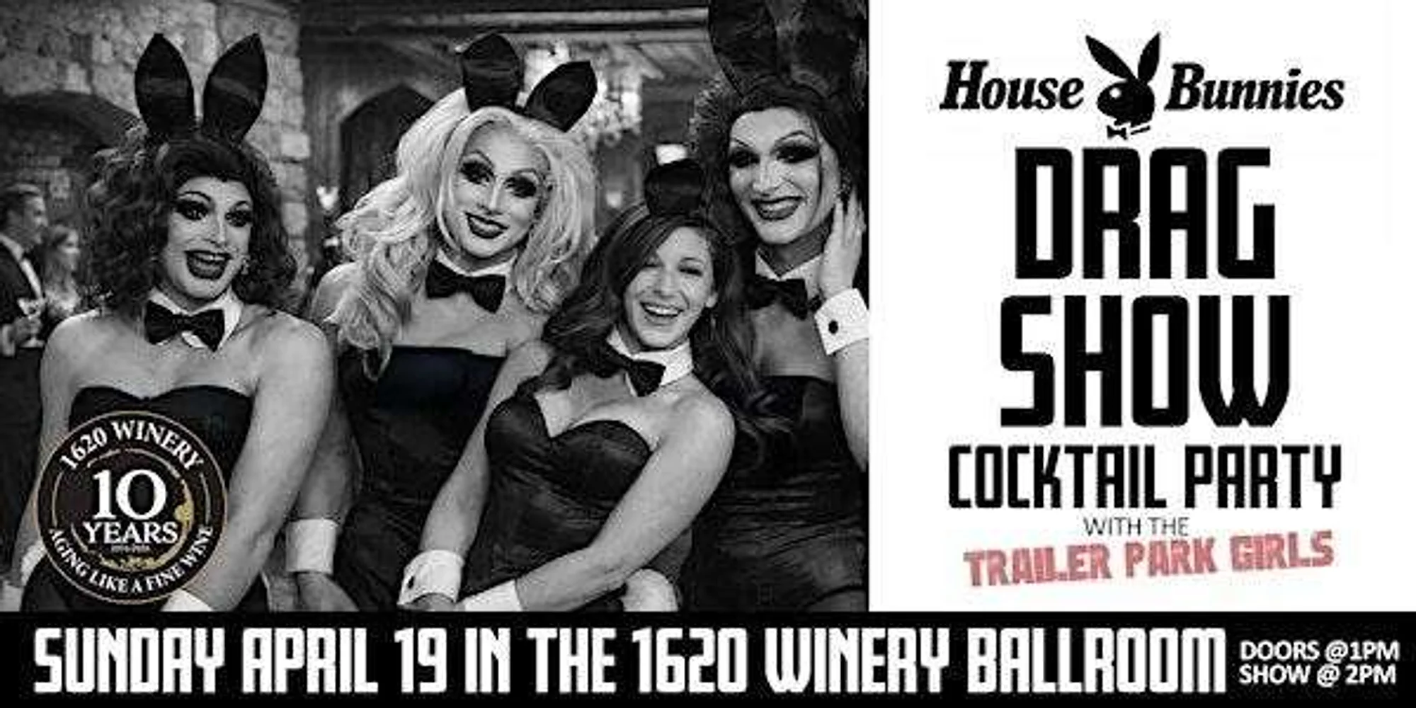 The Girlz Are Back by Popular Demand! Join Us for a One of a Kind Drag Show Cocktail Party with the Trailer Park Girls! Everyone’s favorite drag queens are BACK! This time it’s a throwback classic and classy “House Bunnies” Drag performance and Cocktail party at the 1620 Winery. (“Hef” and his high society hipster pals would feel right at home at this mansion-worthy party!) Ticket includes the full show plus a free mimosa and passed hors d’oeuvres during cocktail hour. The cash bar will be open throughout of course! (credit cards accepted) ROUND UP YOUR FUNNEST FRIENDS AND GRAB TICKETS! (Exclusively 21+) DOORS AT 1PM FOR COCKTAIL HOUR, SHOW AT 2PM