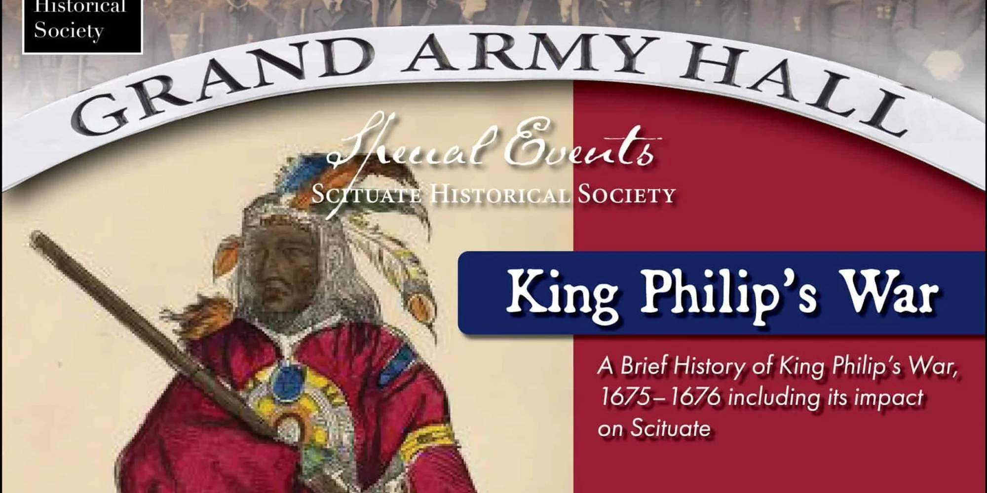 A Brief History of King Philip’s War, 1675–1676 including its impact on Scituate. Presented by Jim Glinski, Local Historian and Author. Reservations are recommended (see Event Website). Payment will also be accepted at the door. Tickets for this event are: $10.00 per person for Society members $15.00 per person for non-members