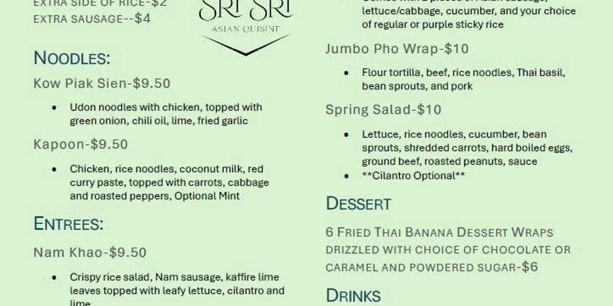 This food truck is based right here in Le Mars. Launching in 2025, Sri Sri serves traditional and original Asian dishes from family recipes passed down through generations.